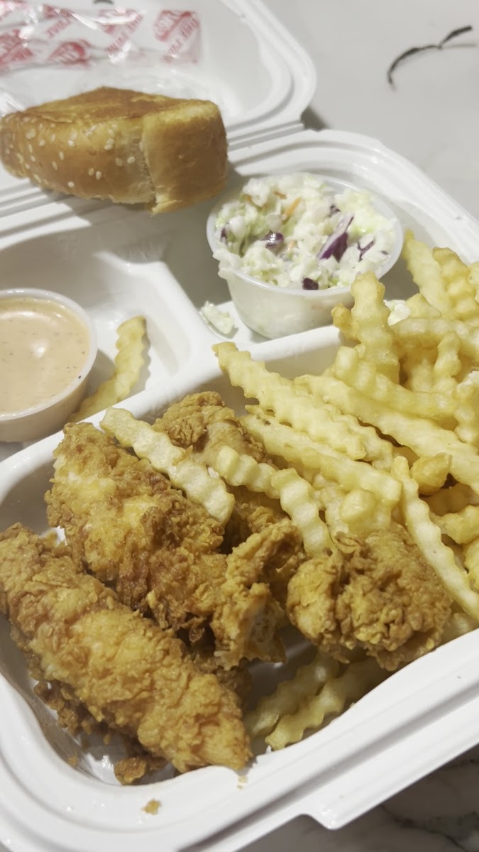 One of the standout features of Raising Cane’s is its simplicity. The menu is straightforward, with a focus on chicken tenders, fries, and their signature dipping sauce, which is a fan favorite. It’s all about quality over quantity here. For those who like variety, you can add a side of Texas toast or a fresh coleslaw to round out your meal. If you’re a first-timer, definitely try their Combo Box, which comes with four tenders, fries, toast, and a drink. The chicken tenders are served piping hot, and the toast is perfectly buttery and crispy, providing the perfect contrast to the tenderness of the chicken.